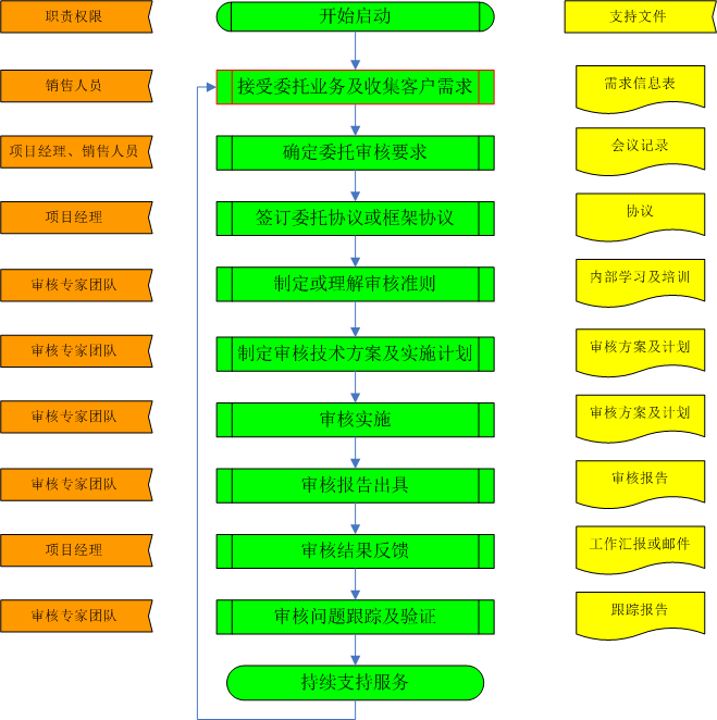 委托審核基于天奇億(北京)管理咨詢有限公司的專業(yè)能力以及客戶的認可信任,公司愿意為客戶提供委托內部審核服務以及委托對客戶的供方進行審核服務,并提供相應的服務報告和改進建議;根據客戶的要求我們也愿意提供后續(xù)的跟蹤及驗證支持。從第三方視角去發(fā)現(xiàn)不容易發(fā)現(xiàn)的問題,進而提升客戶管理水平,降低客戶的風險。流程如下: